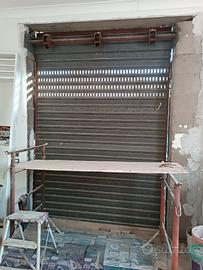 Serranda in ferro completa di telaio anch'esso in ferro e rullo con molle, alt telaio 3,30,alt serranda 2,85 larg2,00