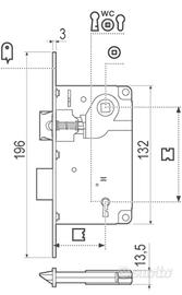 Vendo nuova SERRATURA AGB Serie Centro d.90 FRONTALE MM 18 X 196 - Scrocco con Cassa Ridotta Patent - Bordo Tondo - Cromo Satinato - SENZA CONTROPIASTRA