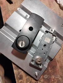 Serratura Prefer di sicurezza doppia per basculante garage. le due serrature hanno una chiave unica per entrambe e sono in tre copie. sono due piastre antisfondamento, due piastre di protezione del tamburo e due serrature con chiave di sicurezza.