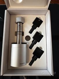 Serratura e Chiavi Intelligenti Serratura connessa per porta d'ingresso con le sue chiavi intelligenti, Bluetooth e condivisione dell'accesso tramite Un accesso più sicuro e flessibile alla tua casa Apertura con le Chiavi Intelligenti Netatmo o tramite smartphone con comunicazione Bluetooth crittografata Condivisione dell'accesso a casa a distanza tramite l'app Chiavi Intelligenti protette e contraffazione impossibile Cilindro ad alta resistenza certificato EN 15684, SKG*** Compatibile con porte a cilindro europeo Alimentazione a batterie incluse (1 anno di autonomia) Installazione fai-da-te Vedi dettagli nel sito del produttore