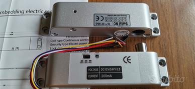 Vendo serratura elettrica struttura robusta in pesante alluminio perno in acciaio. Volt 12 c.c. Mai utilizzata.