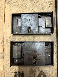 Coppia di serrature in ferro antiche spesse e pesanti , primi ‘900 , complete di viti di fissaggio d’epoca e una mostrina da porta originale. Sono senza chiavi. Misure: una 18,5 x 11 x 3 cm e una 19x10x2,5 cm. Venduto visto e piaciuto, NIENTE DOMANDE DA PERDITEMPO O CURIOSI, se c’è l’annuncio è ovvio che è disponibile, non lo chiedete non rispondo
