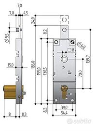 Marca: PREFER serratura per basculante/garage senza cilindro interasse 70 mm Nuova mai usata