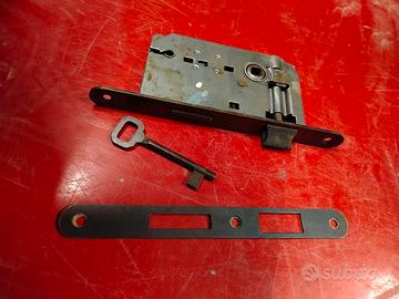 Serratura Patent piccola incasso Agb per porta da interni con chiave e scontro, entrata 50 mm, interasse 70 mm, bordo tondo 188x20 mm, acciaio finitura bronzato Disponibili 180 pezzi