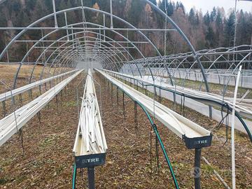 Sono ideali per la coltivazione di fragole fuori suolo con canaline sospese ( 5 file per ogni serra , pari alla lunghezza della struttura), ma non solo