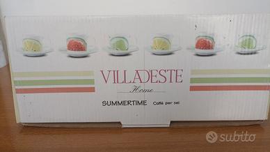 Una bella confezione di 6 tazze per caffè Villadeste con piattini. Con immagine di frutta in ceramica.