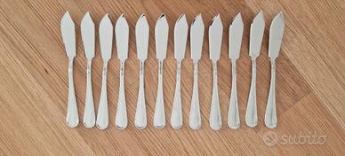 Bellissimo servizio di 24 posate da pesce, 12 coltelli e 12 forchette, in acciaio inox 18/10 lucidato a specchio di Eme posaterie, made in Italy, modello Impero.