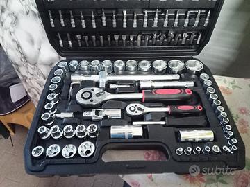 set 108 pezzi chiavi bussola con cricchetto da 1/2 e 1/4 con inserti torx, croce, piatto, esagonale, bussole lunghe, prolunghe, snodi...ideale per riparazione auto, moto, garage, fai da te, officina, meccanica i. pratica custodia in plastica