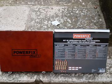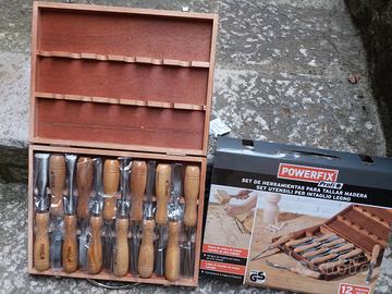 Set di 12 Utensili per intaglio legno POWERFIX nuovi nella loro confezione originale. Valigetta per trasporto e lame al cromo vanadio