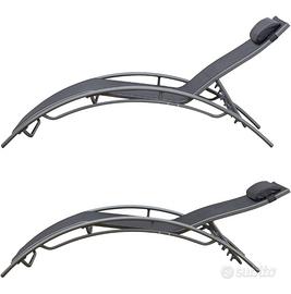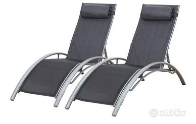 Happy Garden Set di 2 lettini in textilene, struttura alluminio color grigio, tessuto colore grigio, modello Galapagos. Lettino da Esterno multiposizione.