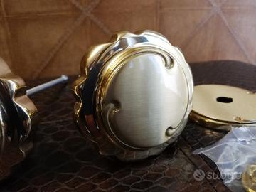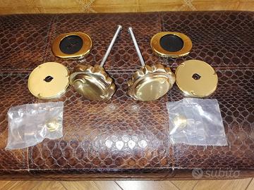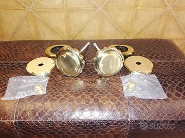 Set completo di 2 POMOLI fissi per portone, in ottone lucido lavorato, completo di relativa piastrina e controdado dedicato, sempre in ottone.
