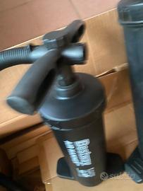 Vendo coppia di pompe manuali Bestway Air Hammer™, ideali per gonfiare e sgonfiare rapidamente boe, materassini, gommoni e piscine. Modello Grande (48 cm / 19"): Alta capacità (3.5 L/ciclo), perfetta per i gonfiabili più voluminosi. Modello Medio (37 cm / 14.5"): Pratica e potente (2.8 L/ciclo), ideale da portare in spiaggia. Sistema a Doppia Azione: Entrambe le pompe erogano aria sia in fase di spinta che di trazione, dimezzando la fatica.