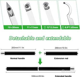 【Strumenti rotanti di alta qualità aggiornati】 Presentano testine di taglio in carburo di tungsteno ad alta densità, realizzate con materiale per lame in acciaio ad alta velocità.La maniglia e la spina sono staccabili e regolabili, e il kit include 2 manici e connettori staccabili.