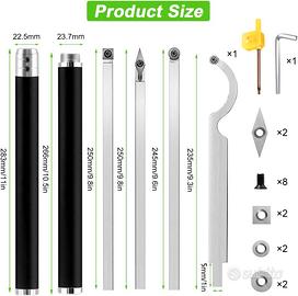 【Set di utensili per tornitura combinati per la lavorazione del legno】 Include 4 utensili per tornitura del legno, 1 set di frese con inserti in metallo duro, 2 chiavi e una valigetta.La custodia è facile da trasportare e mantiene gli utensili al loro posto senza rischio di scivolamenti.