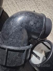 Vendo curve a gomito in polietilene da 110 mm con attacco filettato e a compressione, perfette per impianti di irrigazione e condotte idriche.