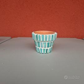 Sei di 3 vasetti di terracotta decorati con mosaico vetroso tagliato a mano, Il vasetto è artigianale, realizzato dal sottoscritto e made in Italy. Diametro esterno del vasetto cm 7, adatto per piccole piantine o piante grasse. Ci sono altri vari di dimensioni diverse nella mia bacheca. Prezzo per pezzo singolo € 6