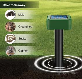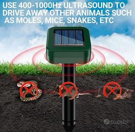 ✨ PRODOTTO NUOVO (Mai utilizzato, confezione originale). Sistema di difesa per esterni efficace e rispettoso dell'ambiente. Questo set da 4 pezzi è progettato per proteggere giardini, orti e aree da campeggio da roditori e rettili in modo totalmente automatico. Specifiche Tecniche e Funzionamento: Azione Efficace e Sicura: Emette ultrasuoni ad alta frequenza che creano un ambiente sgradevole per topi e talpe, allontanandoli senza ferirli. Sicuro per l'uomo e per gli animali domestici. Ampia Copertura: Ogni unità copre un raggio d'azione di circa 20 metri di diametro. Per risultati ottimali in zone infestate, si consiglia l'installazione di 2 dispositivi ogni 20 metri. Ricarica Solare Integrata: Alimentato da celle solari che caricano la batteria interna. Non necessita di batterie aggiuntive o cavi. Materiali e Durata: Realizzato in ABS e PVC di alta qualità, resistente alla corrosione e agli agenti atmosferici. Installazione "Plug & Play": Design compatto e leggero, basta inserire il picchetto nel terreno. Perfetto per giardini di ville, hotel, fattorie o risaie. 🚀 SPEDIZIONE RAPIDA: Spedisco nel minor tempo possibile per garantirti una consegna veloce! 🤝 RITIRO A MANO: Disponibile a mano in zona Alfonsine (RA) sempre possibile. ✅ GARANZIA: I prodotti sono nuovi e esattamente nelle condizioni descritte. 📸 ATTENZIONE: Si prega di visionare attentamente tutte le foto e leggere bene la descrizione prima di procedere. ⛔ RESTITUZIONE: Trattandosi di vendita tra privati, la restituzione non è accettata. 🚫 ASTENERSI PERDITEMPO: Cerco e offro massima serietà. Grazie! ✨