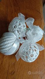Set 4 palline di Natale all' uncinetto, idea regalo! Nascono per essere regalate tutte insieme, ma si possono anche usare singolarmente come chiudi pacco originale. Ideali come pensiero per una persona che si conosce poco, per gli amanti dell' handmade, per i regali dell' ultimo minuto, e soprattutto per "la persona che ha già tutto" e a cui non si sa mai cosa regalare! Diametro 8cm, fantasie varie (sempre 2 stile "maglia" e 2 stile "centrino") confezione inclusa
