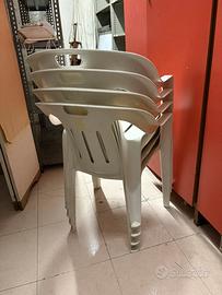 4 sedie da giardino in polipropilene di colore bianco, adatte per uso esterno ed interno.
