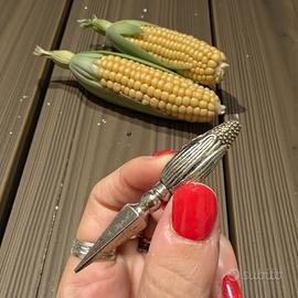 Prima che il mais diventasse farina, polenta o mangime, passava da qui. Da un gesto semplice, ripetuto, quotidiano. Questi sono sgrana pannocchie manuali, strumenti da cucina e da lavoro domestico usati nelle case di campagna tra fine Ottocento e prima metà del Novecento. Il funzionamento era semplice e ingegnoso: la lama veniva infilata al centro della pannocchia e, ruotandola e tirandola verso il basso, staccava i chicchi dal torsolo. I chicchi cadevano in una ciotola o in un sacco, pronti per essere macinati, cotti o conservati. Il manico, modellato a forma di pannocchia di mais, non è un vezzo decorativo: è un modo immediato per dire “questo serve a questo”. In cucina non c’erano etichette, c’era il riconoscimento istintivo degli oggetti. Una volta sgranato, il mais veniva: