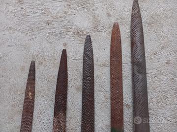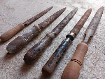 set di 5 raspe, la più lunga 47cm, la più corta 30cm, tutte con manico in legno. prezzo per singola raspa