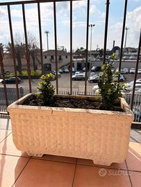 Vendesi elegante set di 5 vasi rettangolari in gesso, caratterizzati da una raffinata lavorazione esterna a rilievo (effetto diamantato). Il gesso conferisce un aspetto pulito e decorativo, ideale per portici, ingressi riparati o interni luminosi. Dettagli dell'offerta: Dimensioni vasi: 60 x 27 x 30 cm (ciascuno). Materiale: Gesso bianco lavorato (ottima finitura estetica). Verde incluso: I vasi sono venduti completi di terra e piante rigogliose: 2 vasi con Sansevieria: piante d'appartamento/esterno riparato, purificano l'aria e sono quasi indistruttibili. 3 vasi con Bosso: cespugli compatti, sempreverdi e molto eleganti. Prezzo di vendita: Singolo vaso (completo di pianta): € 45,00 Blocco intero (tutti e 5 i vasi): € 200 (risparmi € 25,00). 📍 Zona per il ritiro: Ritiro a mano a Giarre (CT). La posizione è estremamente comoda, situata nei pressi dei caselli autostradali, facilitando il carico per chi proviene da Catania, Messina o zone limitrofe. Consiglio: Essendo vasi in gesso completi di terra, richiedono attenzione durante il trasporto. Si raccomanda di venire muniti di protezioni (coperte o cartoni) per evitare scheggiature durante il tragitto.