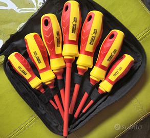 Set di 7 giraviti isolati RUIKE con rilevatore di tensione - Modello: NO.7690 - Materiale: Acciaio al cromo vanadio - Impugnatura ergonomica in PP/TPR - Isolamento per 1000V - Misure incluse: 3x75, 5x100, 6x100, 6x150, PH1x100, PH2x100, Tester 100-500AC