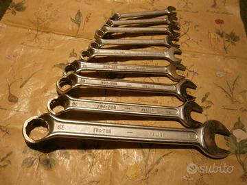 Set di 9 chiavi combinate a forchetta e ad anello disassato ,modello MELIOR di vanadio cromate, della ditta FRA.TUR. (fratelli Turigliatto)di Pratiglione Canavese.
