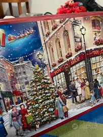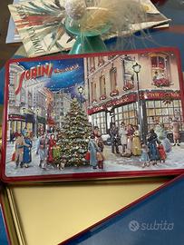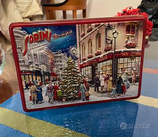 Bellissima scatola da collezione, rettangolare bassa con paesaggio natalizio a rilievo.