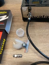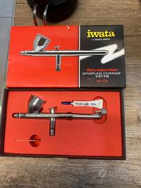 Blocco aerografia Iwata -aerografo IWATA Revolution HP-CR -Compressore Iwta IS-35 -tubo + attacchi rapidi -sistema di pulizia -colori Comart vecchi (in omaggio) Venduto in blocco Non divido Ritiro a mano