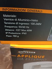 set applique per esterno, in alluminio e vetro attacco ,grande e27 ,nuovi mai usati colore bianco