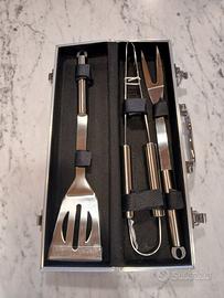 SET IN ACCIAIO PER BARBECUE CON VALIGETTA IN ALLUMINIO,NUOVO MAI UTILIZZATO...