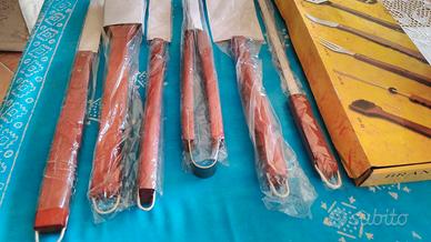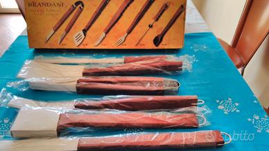 Set barbecue marca BRANDANI - 6 pezzi in acciaio e legno con logo "Brandani" inciso sui manici in legno. Nuovo, mai usato, pezzi ancora incartati