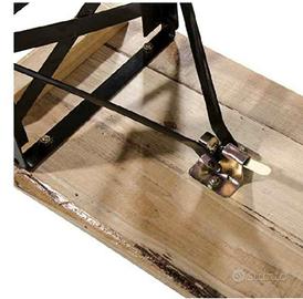 Il set, composto da 1 tavolo e 2 panche in legno, possiede una struttura in ferro verniciato particolarmente resistente.