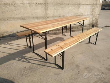 Struttura in metallo verniciato e legno massello di 28 mm, chiusura di sicurezza antiribaltamento.