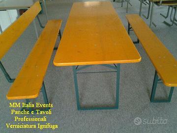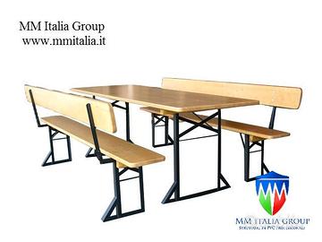 Panche e Tavoli Birreria - Set Birreria Professionali MM Italia Group Linea Golden Prodotto per uso Professionale,con verniciatura Ignifuga, adatte per Noleggio Sagre ecc... Set Panche e Tavoli Pieghevoli Linea Golden, Set Birreria per uso Professionale, che sopporta qualsiasi sollecitazione, adatto per Mense,Sagre Paesane, Feste Patronali,Ristoranti, Bar, Adunate, Eventi Pubblici e Privati, Pro Loco, Noleggio Spessore piano tavolo 2,4 cm. spessore piano panca 2,8 cm. Attenzione La Verniciatura è Ignifuga, é richiesta per qualsiasi uso Pubblico, noi la forniamo di Serie !!!!!!. Il Telaio portante, é Angolare Continuo di 3 cm. per spessore di 3 mm. ( NON 2 MM. COME TANTI IN COMMERCIO, CHE DOPO AVERLI USATI ALCUNE VOLTE IL TELAIO SI PIEGA !!!!), Disponibili nelle versioni : 220 x 80 cm. ( NON 75 CM. COME MOLTI IN CIRCOLAZIONE ) 220 x 67 cm. 220 x 50 cm. 200 x 80 cm. ( NON 75 CM. COME MOLTI IN CIRCOLAZIONE ) 200 x 67cm. 200 x 50cm. MINI SET 160 x 60 cm. ( Solo Verniciatura Naturale ) Panche con o senza schienale, Colore – Ocra – Naturale – Noce Chiaro – Arancio Forniamo anche solo i pannelli visita il nostro sito web, e vedrai le super offerte 2026 Preventivi Personalizzati per Quantita´superiori a 100 Set www.mmitalia.it Visita il Link : http://www.mm-italia.com/Specificazione%20tecniche/Prezzi%20-%20Tavoli-panche.htm ( attenzione ci possono essere delle variazioni di prezzo durante l´anno, quindi fa fede insindacabilmente il sito ufficiale mm italia ) Visita : www.mmitalia.it Siamo anche Produttori di Tendostrutture, Tendoni per ristorazione magazzino deposito Rimessaggio Contatti Team MM Italia Group