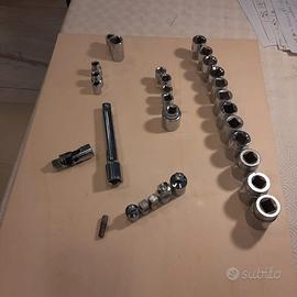 Set 22 chiavi a bussola "Beta" e "Usag", dal n. 6 al n. 23 Nuove, cromate, Chrom Vanadium con 5 adattatori , 1 snodo, 1 prolunga.