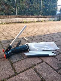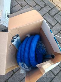 Vendo Set completo usato soltanto 1 mese!!! Piscina Bestway Steel Pro: Piscina rettangolare fuori terra con struttura in acciaio resistente alla corrosione e pareti in materiale DuraPlus™ (PVC a 3 strati e poliestere). Dimensioni: 259 x 170 x 61 cm. Capacità: circa 2.300 litri. Pompa Filtro Intex Krystal Clear: Sistema di filtrazione a cartuccia ideale per mantenere l'acqua limpida e rinfrescante. Telo Copripiscina Flowclear: Copertura specifica per il modello Steel Pro, essenziale per proteggere l'acqua da detriti, foglie e insetti quando non in uso. Kit Pulizia Gre Little Vac: Aspiratore manuale progettato per piscine fuori terra. Include un tubo da 5 metri e diversi ugelli per rimuovere sabbia e piccoli detriti dal fondo. Accessori Extra: Retino per la pulizia della superficie, asta telescopica e tubi di collegamento inclusi.