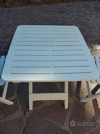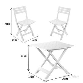 Set completo tavolo e 2 sedie pieghevoli da campeggio o pic-nic in resina bianca Made in Italy Come nuovo