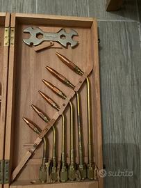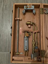 Vendo Set contessi per saldatura autogena Completo di impugnatura, 6 lance da saldatura, lancia da taglio, compasso e chiavi. In cassetta di legno