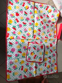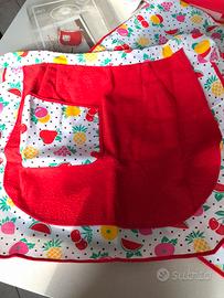 Grembiulino doppio + canovaccio +presina in cotone.Il canovaccio misura cm.75x53, il grembiule 46x58,la presina cm.8x8
