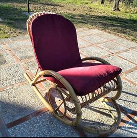 Set 2 pezzi in rattan/bambu Sedia e Sedia Dondolo...in buono stato Forse da rinverdire il colore,però niente stecche mancanti o pezzi rotti
