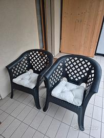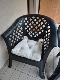 come da descrizione vendo per cambio arredo set di divanetto due posti con cuscino, tavolino e due poltrone in plastica color antracite/nero usate poco e in buone condizioni.