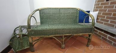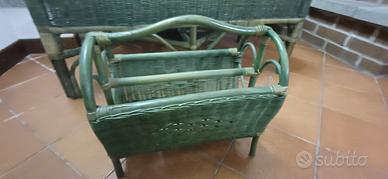 set composto da tavolino portariviste e divanetto a 2 posti colore verde in vimini