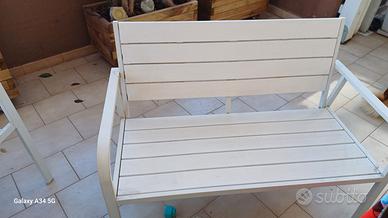 6 sedie alte, 2 sedie basse, 1 tavolo e1 panca, presenta qualche puntino di ruggine.