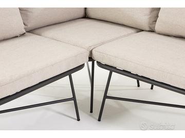 Set TIVOLI CORNER da giardino in stile boho chic per 5 persone, composto da un comodo divano angolare e due tavolini di diverse dimensioni.