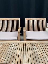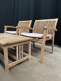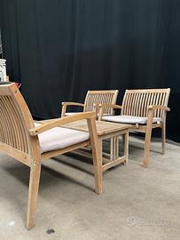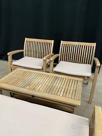 Vendo set da giardino composto da due poltrone, un divano due posti ed un tavolino 50x100 cm.