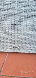 vendo per inutilizzo nuovo set da giardino in rattan composto da 6 poltrone × 2 pouf grigio con cuscini bianchi marca Tectake.