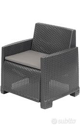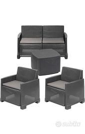 * Salottino da esterno con design in rattan disponibile nel colore grigio antracite e bianco,