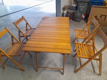 Vendo in buonissime condizioni tavolo da giardino o terrazzo misura 140 x70 con 4 sedie .il tutto richiudibile per rimessaggio..in legno di larice manutentato con apposito impregnante .ideale eventualmente anche per uso campeggio .vendo a 100 euro